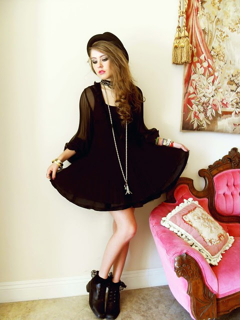 Here's another festival look, this time from Hard Fest in early August! I figured the black would somehow stand out among the neon rave-wear. Great choice for a stuffy summer night, perfect for getting wild in the crowd of a Chromeo concert. This dress is part of the latest JONES + JONES collection. It features accordion pleats, petticoat layers, ruffled collars, and sheer sleeves. Needless to say- my all-time favorite dress. If you can think of any garment that fits me more perfectly, please bring it to my attention, although I sincerely don't believe one exists. This dress is all that matters to me anymore!!